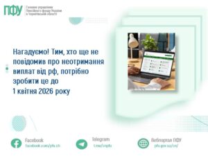 Нагадуємо! Тим, хто ще не повідомив про неотримання виплат від рф, потрібно зробити це до 1 квітня 2026 року